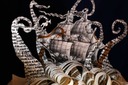 The Kraken was another private commission. The brief was simple – a Kraken taking down a galleon. I tried a few variations for the tentacles, but they all lacked impact. In the end I overprinted the word Kraken many times on the paper before cutting them out. This darkened them, giving a menacing edge.